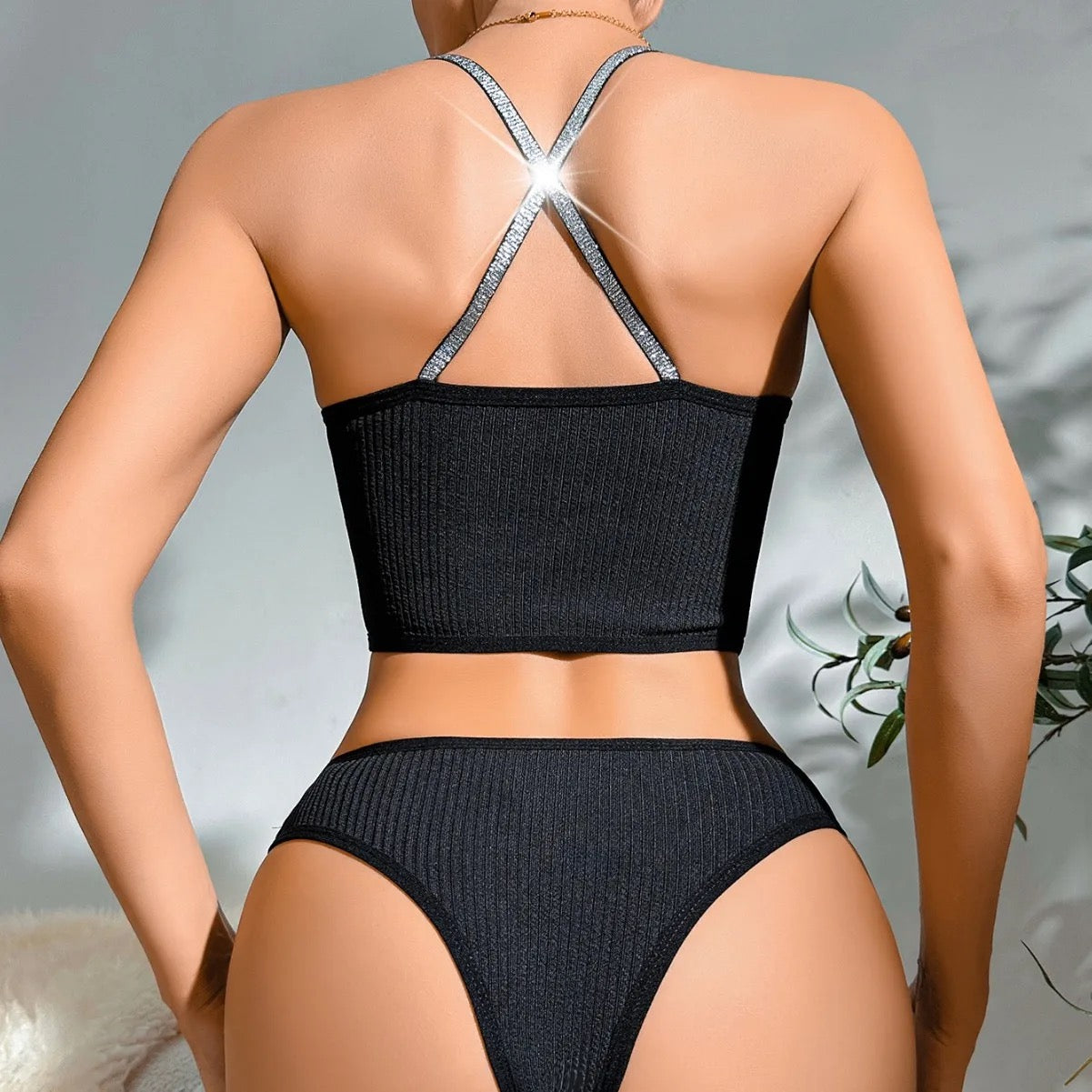 Because every day should feel like your day. The Birthday Set is a sleek, ribbed two-piece designed for the girl who knows comfort & cute. The fitted crop top hugs your curves just right, while the matching high-cut bottoms feature glittering straps that add the perfect hint of sparkle. Whether you’re staying in or showing out, this set is all about celebrating you.